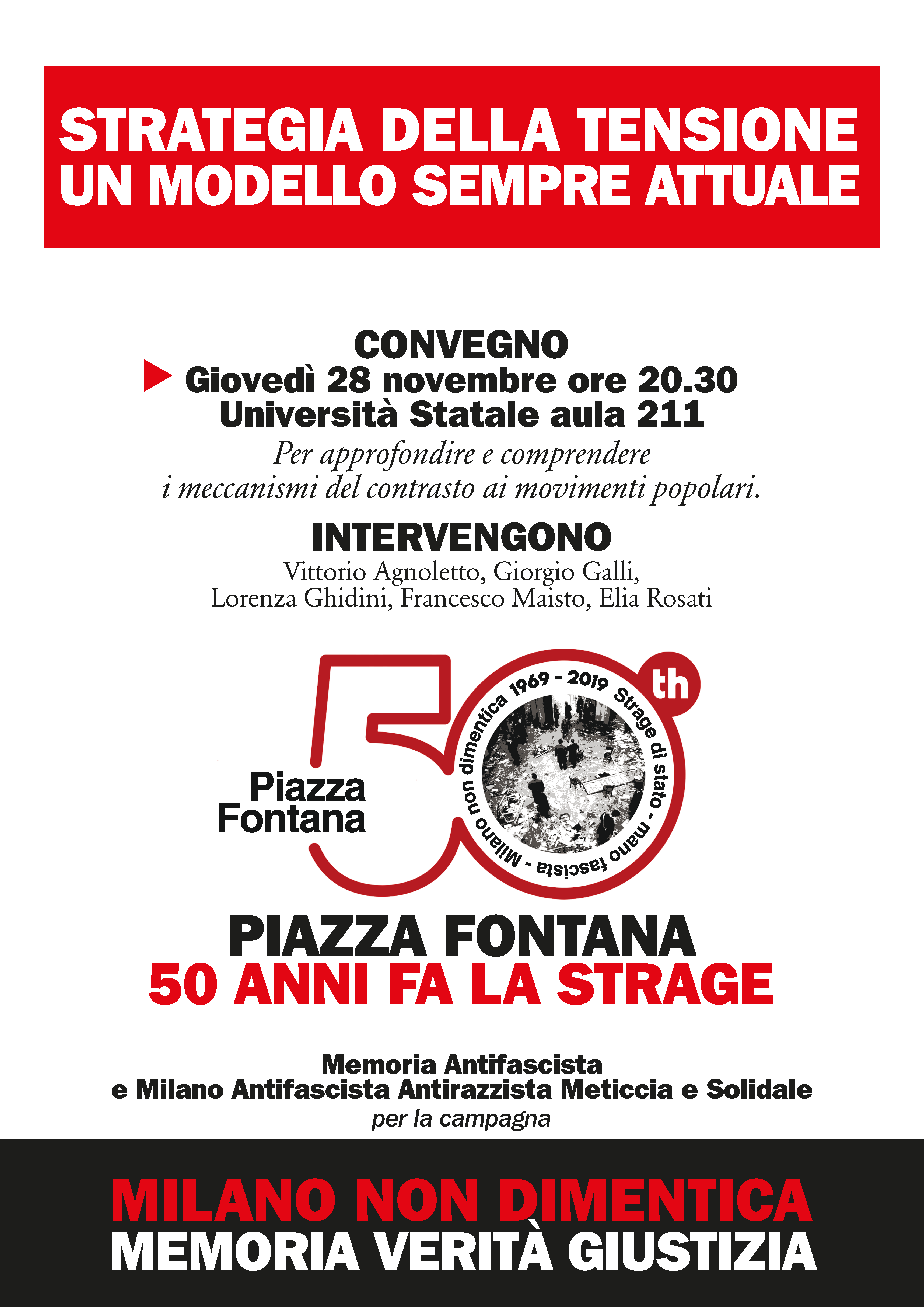 28 NOVEMBRE, MILANO, H.20,30 UNIVERSITA’ STATALE. STRATEGIA DELLA TENSIONE, UN MODELLO SEMPRE ATTUALE