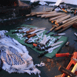 La foto mostrata dal governo israeliano (attrezzi da cucina e da lavoro) per giustificare come autodifesa il massacro compiuto dai loro soldati. E’ impressionante la similitudine con le foto che la polizia italiana mostrò alla stampa (attrezzi provenienti da un vicino cantiere edile) per sostenere la tesi della presenza dei Black Block nella scuola Diaz.