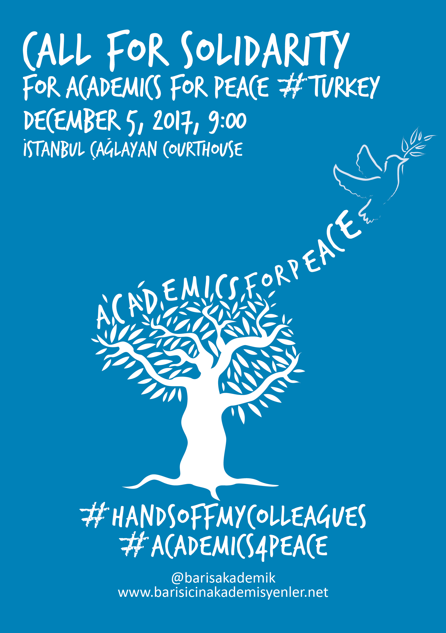 Solidarietà ai professori turchi che il 5 dicembre finiranno sotto processo per aver firmato l’appello “Academics for peace” tra gli inquisiti c’è anche Zeynep Sedef Varol che ha partecipato al Forum per il diritto alla salute che abbiamo organizzato a Milano il 4 novembre.