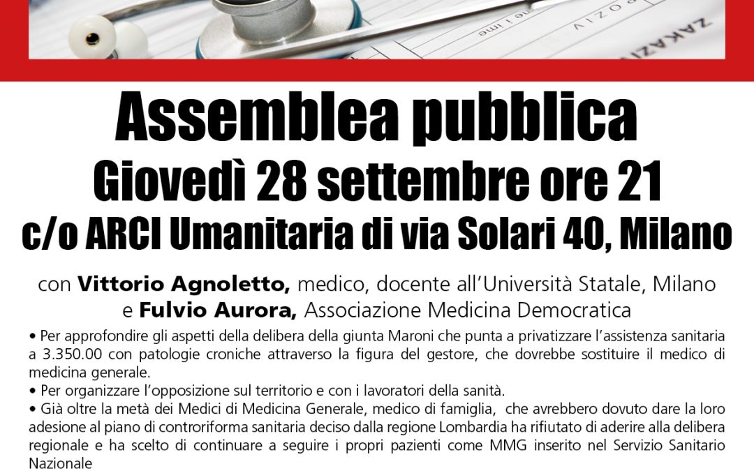 Sabato 7 ottobre alla Casa della Cultura a Milano a discutere su come fermare la controriforma della sanità di Maroni. L’INVITO E’ PER UN’INFORMAZIONE COMPLETA E PER DISCUTERE NEL MERITOMILANO CASA DELLA CULTURA VIA BORGOGNA, 3 7 OTTOBRE 2017 ORE 9,30-13,30...